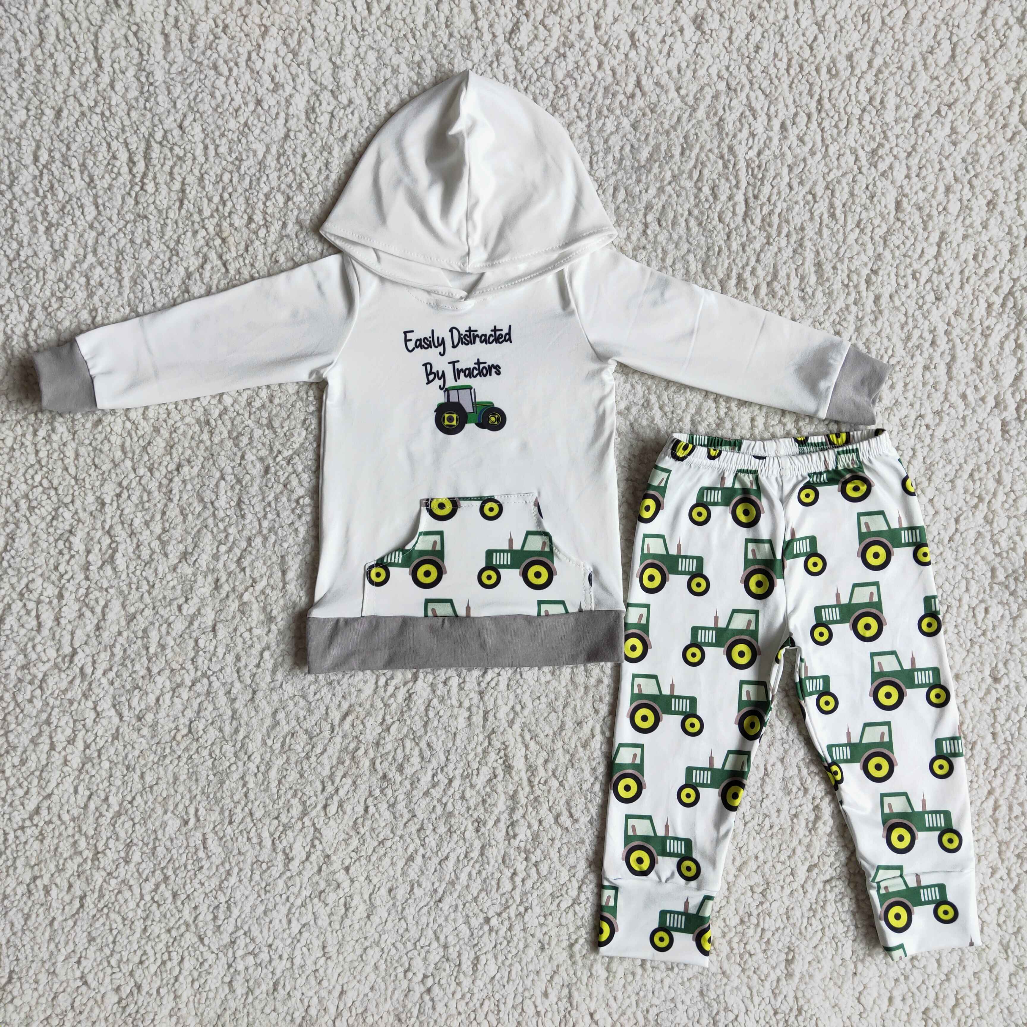 Easily distraced by tractors boy hoodie set - 3-6M is backordered and will ship as soon as it is back in stock.