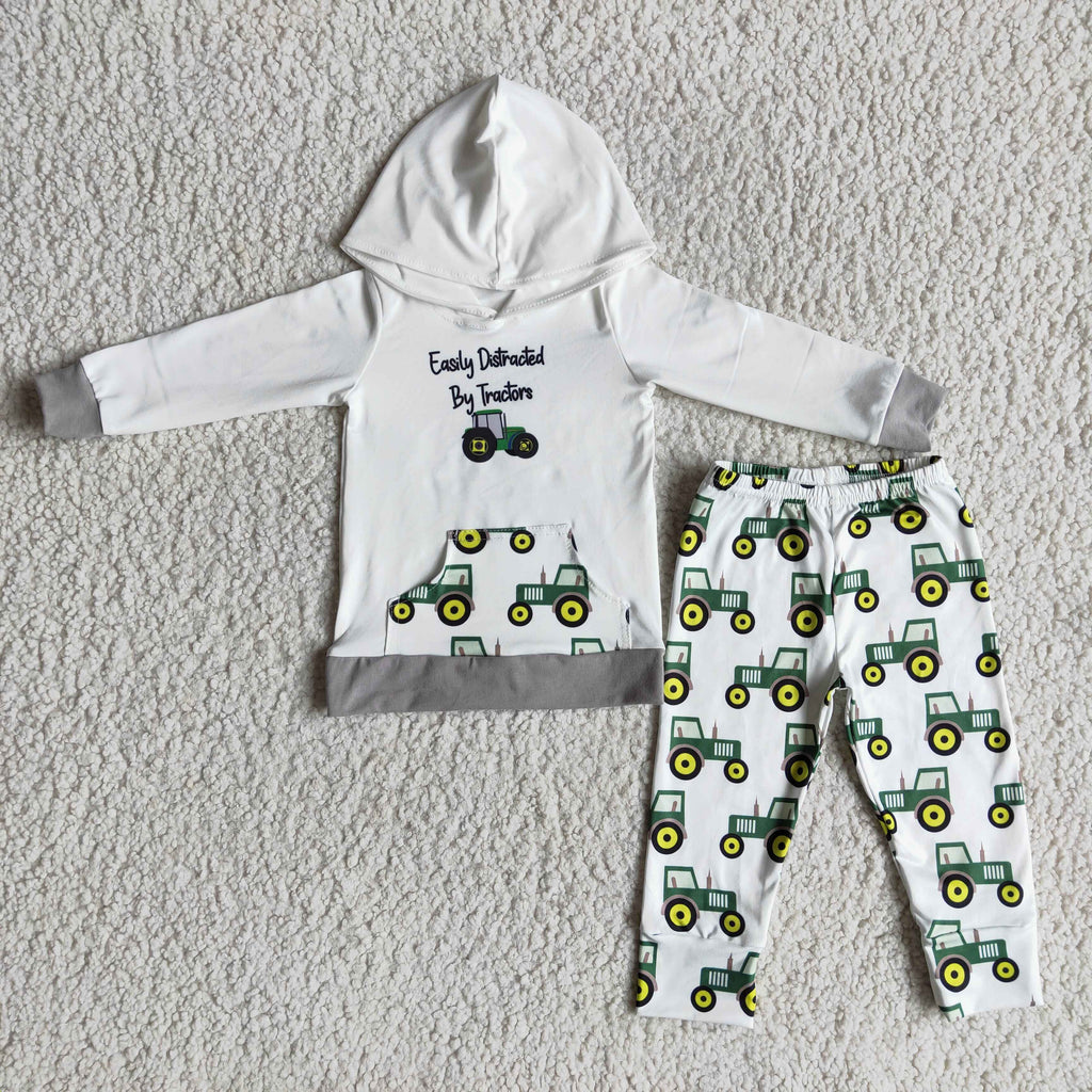 Easily distraced by tractors boy hoodie set