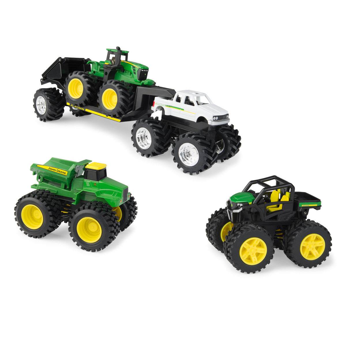 A great value, this all-in-one Monster Treads set is the perfect gift for younger John Deere fans. The unique gift box presentation include three monster treads vehicles and a pick up truck and trailer, all in extreme off-road styling.