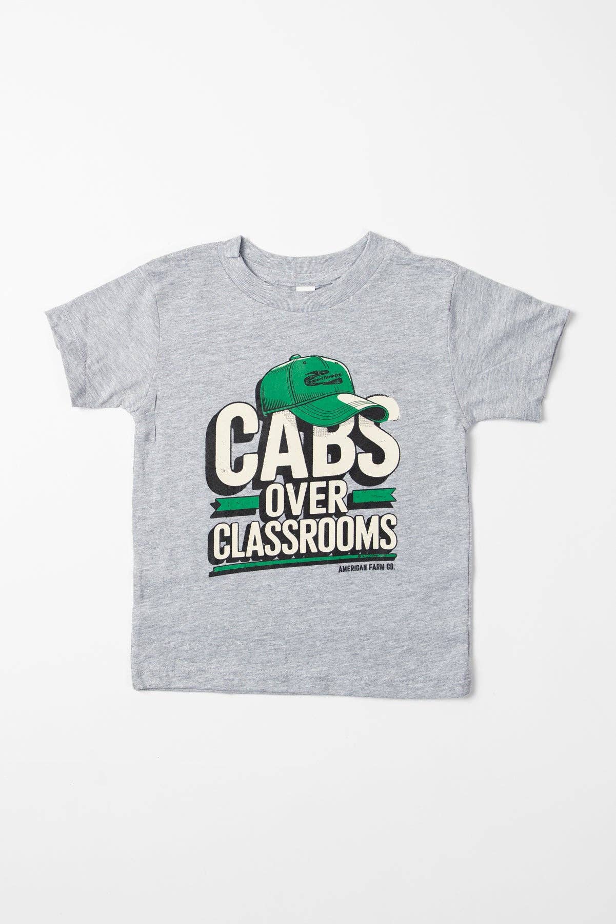 This playful toddler and youth tee proudly displays "Cabs Over Classrooms" in bold cream letters with a green support farmers hat graphic above. Perfect for the little farm kid who would rather be in the tractor cab than the classroom, it’s made from soft athletic heather fabric for all-day comfort and farm-ready style.