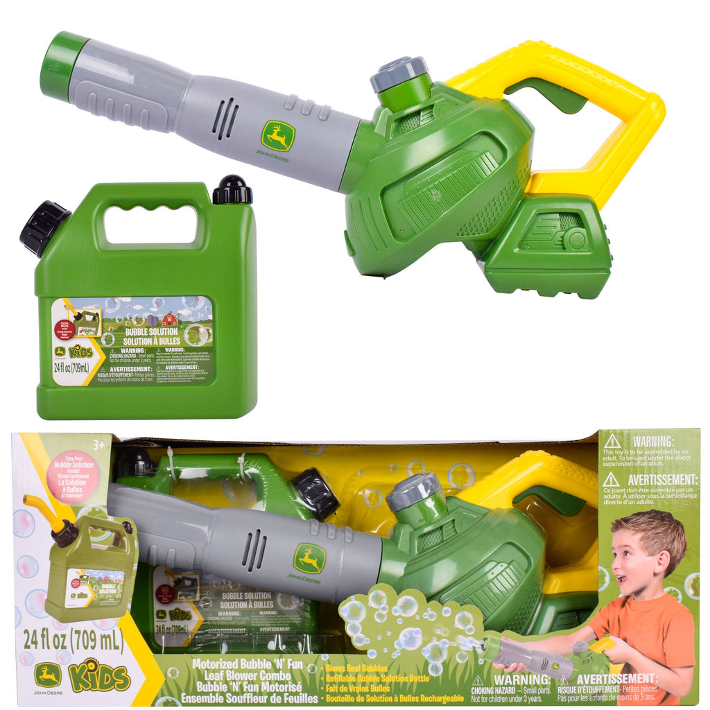 Help around the yard with your very own John Deere bubble leaf blower! Blow a continuous stream of non-stop bubbles without losing your breath.