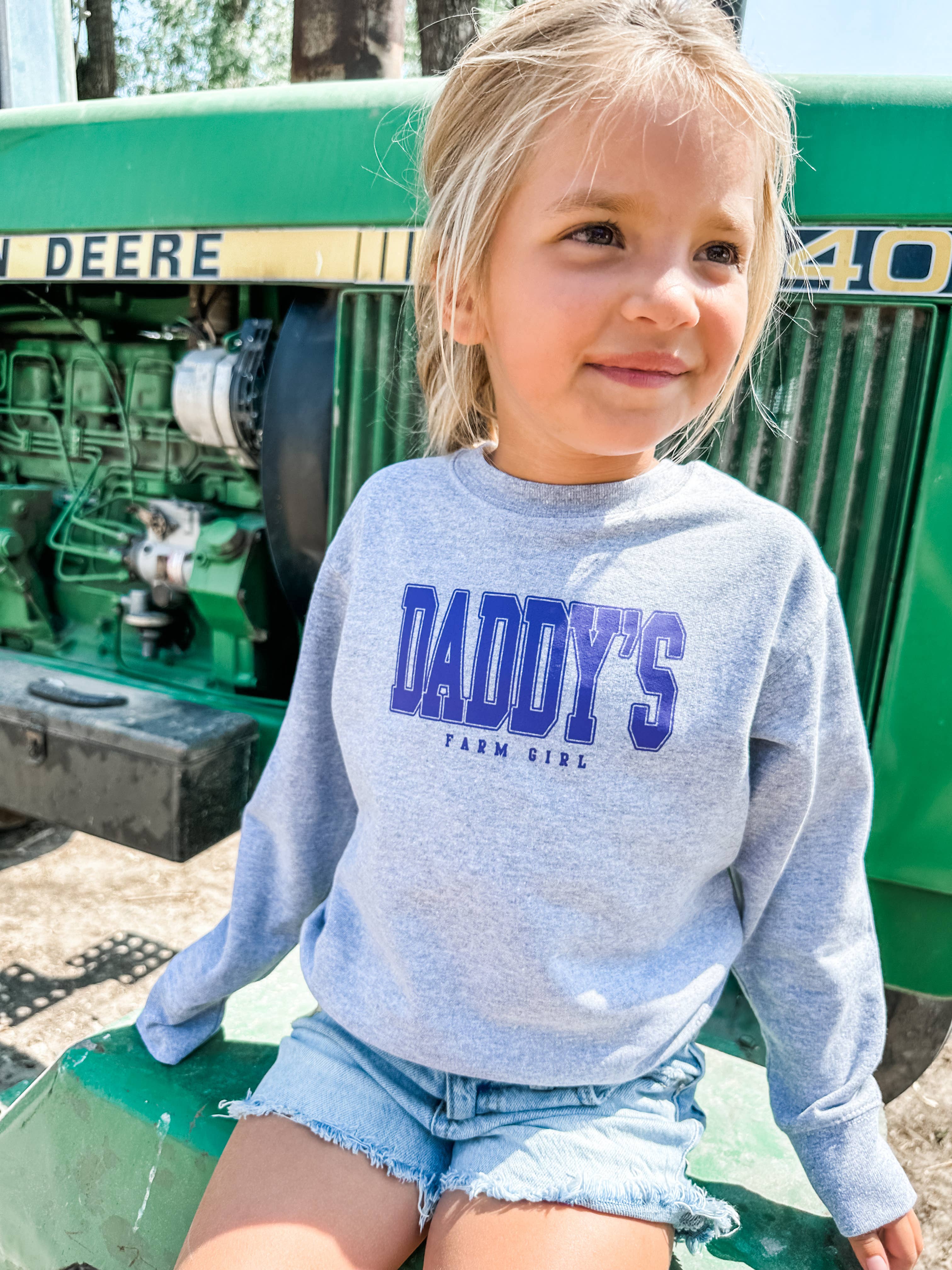 Western 'Daddy's Farm Girl' Grey Toddler/Youth Crewnecks - 2T is backordered and will ship as soon as it is back in stock.